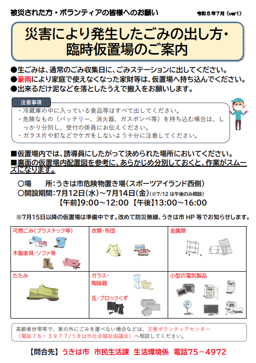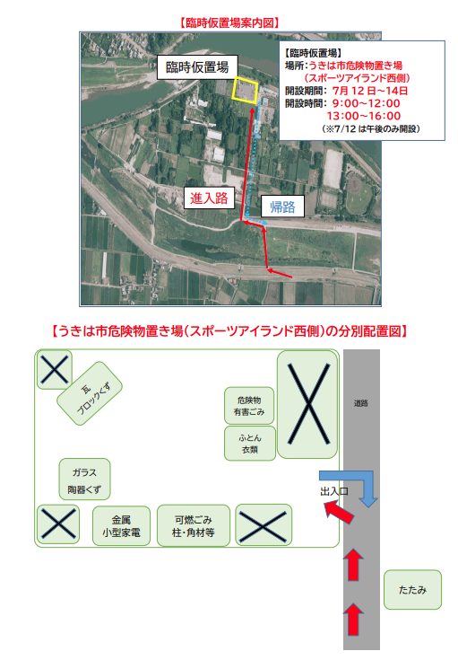 *本日7月12日(水曜日)臨時仮置場については、土砂災害警戒情報の発令があったため中止します。