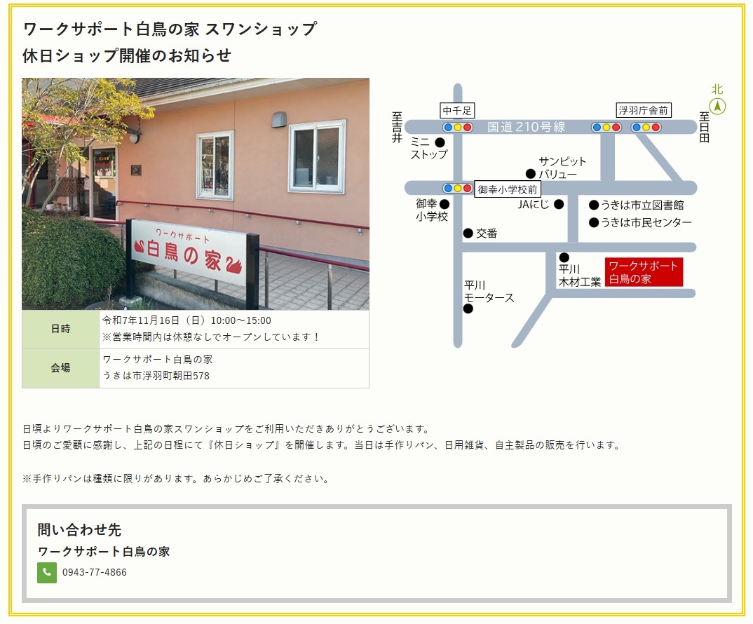 ★ワークサポート白鳥の家 休日ショップのお知らせ★