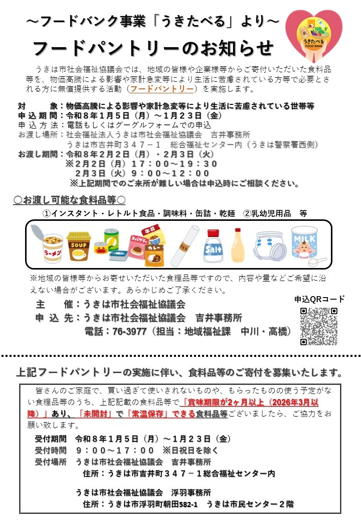 フードバンク事業「うきたべる」フードパントリーのお知らせ