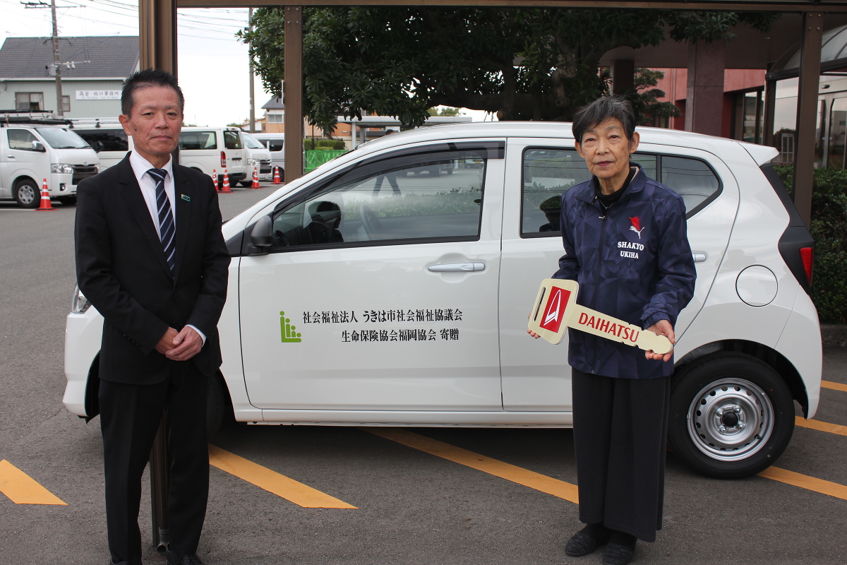 福岡保険協会では、社会保険会社職員約6,700名による募金活動を実施されています。この募金を財源に、令和7年度は福祉巡回車を県内社協に2台寄贈いただき、そのうち1台をうきは市社会福祉協議会へご寄贈いただきました。