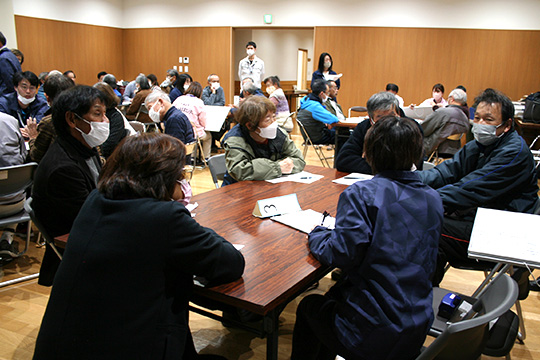 『見守り』をテーマに、地域みんなで見守り・見守られる関係を築いていくためには、どんな仕組みや取り組みが必要かを、福富地区に関わる皆さんで話し合う場のこと。