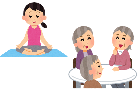 ヨーガ体験で心と身体をリラックスし、お茶を飲みながらお話しましょう。