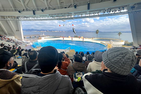 マリンワールドでは、まず、イルカやアシカのショーを観覧。ショーを初めて見るという方も多く、イルカがジャンプをしたり、アシカが体操をしたりする姿に驚いたり、笑ったりしながら、とても楽しまれていました。