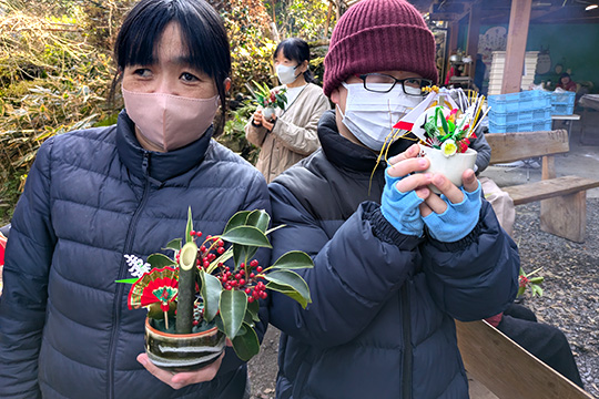 食後には、お正月アレンジメントを自分たちで作り、楽しい時間を過ごすことができました。