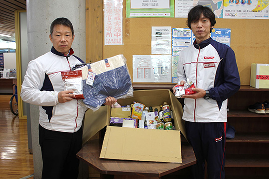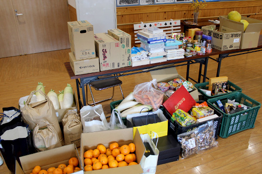 校区の老人クラブ会員に呼びかけ、41名の方が食料品や生活用品等をお持ち寄りいただきました。