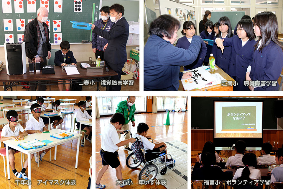 うきは市内の小学校では、毎年、障がいのある方の生活等について学び、うきは市がみんなにとって「暮らしやすいまち」となるよう、自分たちにできることを考えています。福祉体験で学習したことをまとめたり、家族に話したりすることが「福祉のこころづくり」への一歩となります。社協はこれからも福祉体験学習を通して福祉のこころづくりを推進します。