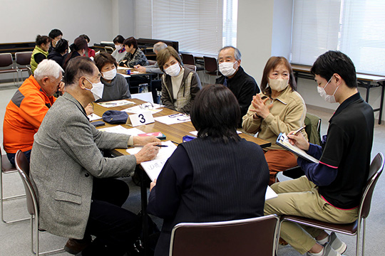 報告後には、認知症当事者の方の地域活動への参加やお店・施設などを利用するための工夫として、本人や家族、周囲の方々それぞれの視点からどのようなことが必要かを話し合いました。