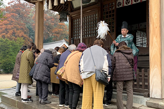 当日はあいにくの雨模様でしたが、うきは市、朝倉市、筑前町の由緒ある三つの神社を巡り一年の平穏を祈りました。